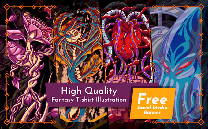 I Will design High Quality fantasy illustration for your t-shirt like monster, imagination object for your t-shirt design with unique coloring